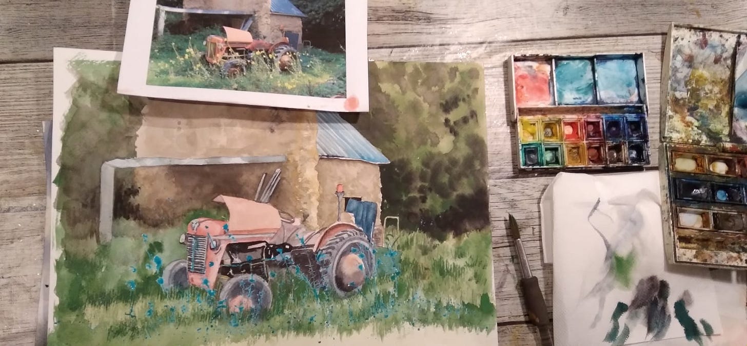For work at home you can explore colour and texture with paints, pastels, collage, inks, Brusho, coffee/tea, resists etc - and you have the opportunity to experiment with that stash of art materials you've never got around to trying!