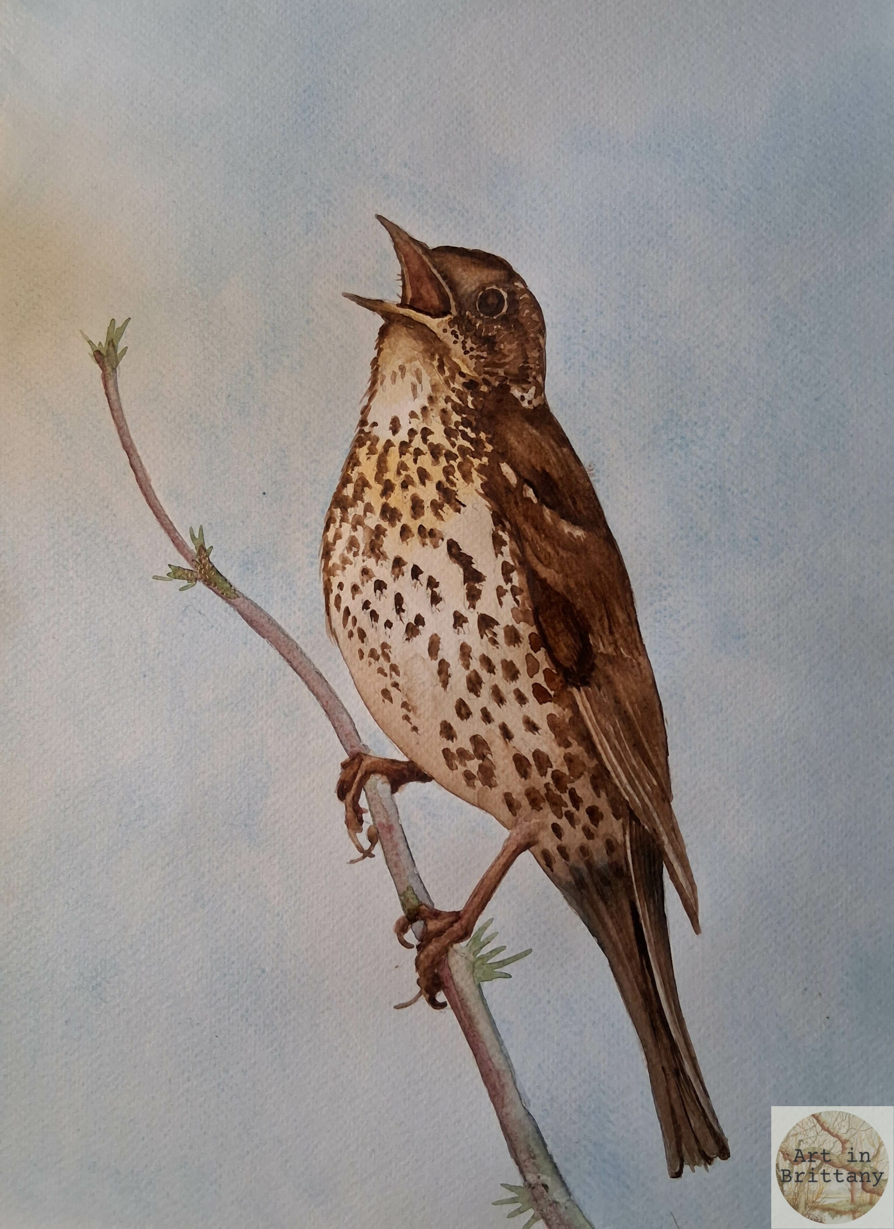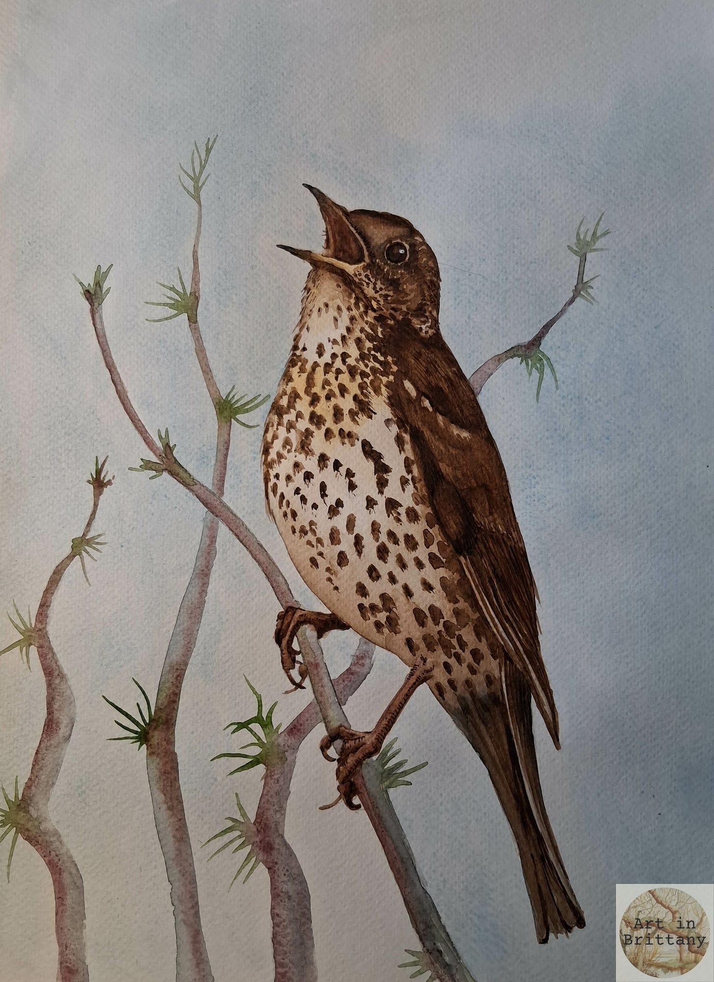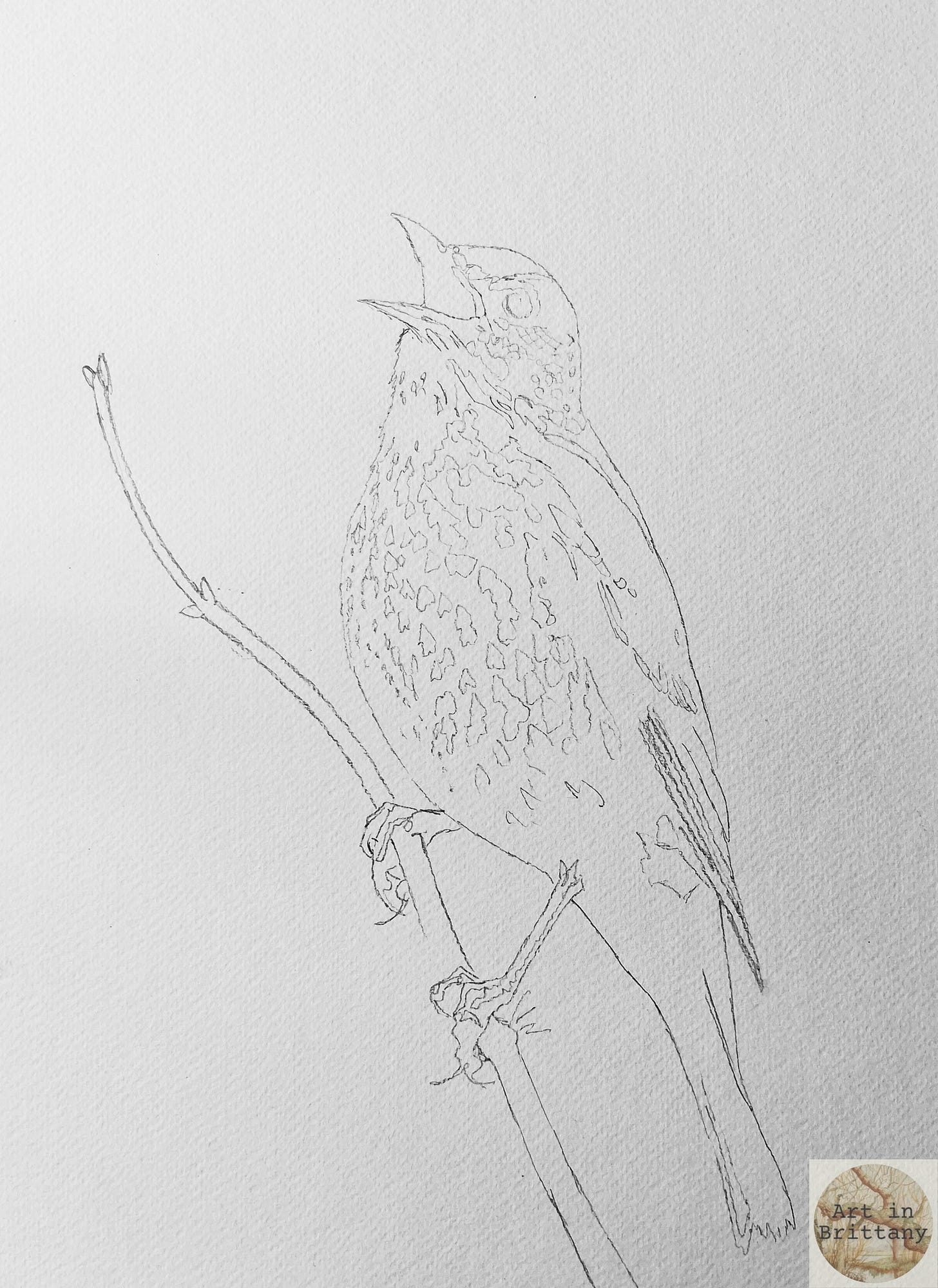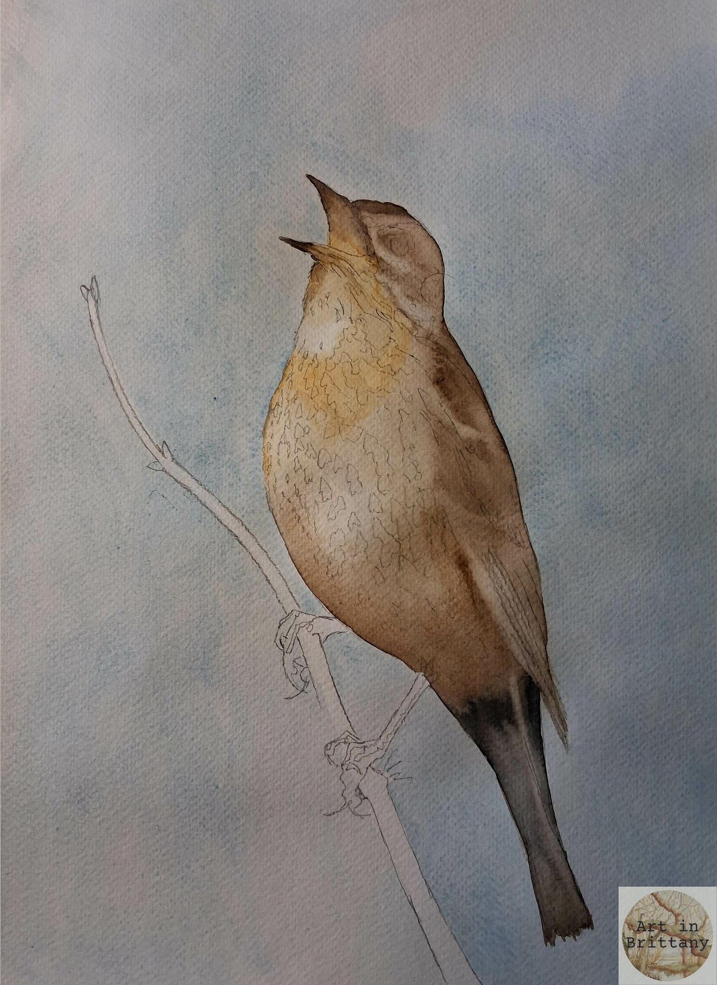 Every morning, a thrush sings from the treetops above my stables, greeting the day long before the sun fully rises. There’s something wonderfully sure and hopeful in his voice, and I wanted to capture that feeling in paint. This tutorial walks you through the watercolour inspired by his dawn chorus.